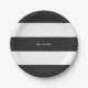 A simple black and white striped patterned birthday paper plate adds a touch of class from the ordinary paper plate.