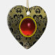 CLASSY BLACK GREY RED DAMASK AND RUBY GEM STONE CERAMIC ORNAMENT