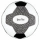 This soccer ball has a classy abstract pattern of black and white damask with fancy white scrolls. Customize your text in the white oval with the template.