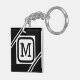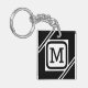 Classy Black & White Simple Square Lined Monogram Keychain