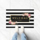 Classy Black White Stripes Beautiful Floral Decor - Elegant Girly Welcome Doormat Template.
