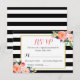 Classy Black White Stripes Floral RSVP Reply Card