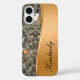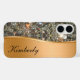 Glitzy smartphone case design for iPhone 16 designed in simulated sparkling jewel bling digitally printed on the cover and a gold tone monogram emblem you can personalize with your name drop or monogram initials to make this your own. Carry your cellphone in a style as unique as you are.