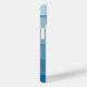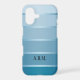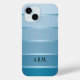 Stylish phone case featuring a blue tonne sur tonne with silver striped design with your own text or monogram.