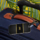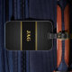 A modern black carbon-like monogrammed design with classy gold accents on the initials. Perfect for your business travel events when you want to make a good impression.