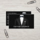 Cartes de visite Classy pour un service de Formalwear ou Tuxedo Rental conçu avec un costume pour homme sur l'avant et le dos dans ce design à deux côtés déjà organisé de sorte que vous remplacez notre texte par le vôtre.