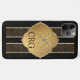 This classy case is perfect for a professional look when you're on the go. This design features a gold and black dotted and striped pattern with a gold and faux diamond crest. Personalize with a three letter monogram just below the golden decoration.
