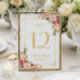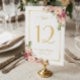 Elegant Chic Pink Floral Gold Wedding Table Number Card.