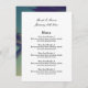 Classy coastal theme wedding menu template. Elegant template with classy typography and palm tree photo. Beautiful templates for couples getting married in summer or exotic locations. Part of affordable collection set with matching decorations and stationery. Personalize with names of bride and groom.