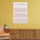 This classy white and coral themed seating chart is great choice for your classy wedding reception.  Set upon a white background with a lovely coral font, organize your wedding guests today!