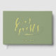 This guest book provides an ideal space for your friends and family to leave their signatures and warm messages. Made with high-quality materials, it showcases the words 'Guest Book' in elegant gold foil calligraphy script, against a stylish medium to dark sage green backdrop. Personalize it with your wedding date on the front and your initials on the spine to make it distinctively yours. This cherished keepsake will serve as a beautiful reminder of your special day for years to come.
