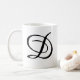 Simple, classy, modern customizable add your own initial, monogram or text black and white initial in trendy Amazone script font coffee cup mug.