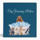 Dog grooming service presentation binders designed with a cute dog bath on the front with a Cocker Spaniel in the soap bubbles and a variety of other dogs. Created for an independent Dog Groomer or salon.