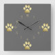Classy dog paws wall clocks with gold looking dog paws and gold lookin numbers on the clock face in this upscale wall decor pet animal clock design for your kitchen, bathroom, or any room in your house you want to add some colour and character.