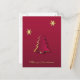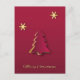 Classy elegant Christmas illustration featuring a simple clean red Christmas tree with golden snowflakes. This paper art design is modern, festive, minimalist and professional.