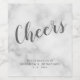 featuring title 'Cheers' in grey modern script font with name and date in modern sans serif font on white marble background.