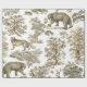 Monochrome toile pattern with wild forest animals - bear, deer, wolf, hare and trees for chic gift wrap
