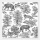 Monochrome toile pattern with wild forest animals - bear, deer, wolf, hare and trees for classy nursery, kids' room, bedroom