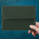 Classy stylish dark forest green invitation envelope with elegant liner featuring sage green and ivory cream botanical foliage.
