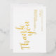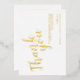 This design features title "Thank You" in real gold foil modern script font with detail in real gold foil modern sans serif font on white background.