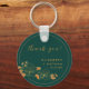 Classy Emerald Green Gold Floral Wedding Thank You Keychain
