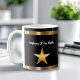Classy employee of the month coffee mugs including a gold coloured star and geometric line design element along with text templates you can customize. Designed to reward excellence and productivity at work. Design is displayed on both sides of the coffee cup for right or left handed drinkers.