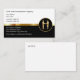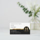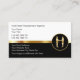 Classy employment agency business cards with simulated gold design elements printed on the front, text and layout you can easily personalize, along with half the background colour you can customize. Designed for any business involved in employment, placement, or workforce temps.