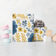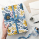 This beautifully arranged classic Mediterranean botanical flower design features a vibrant pattern of bright yellow and dark blue flowers and leaves on a crisp white background. It is perfect for wrapping gifts for fun birthdays or any special occasion—just because! The design is ornate, stylish, and eclectic, making it appealing to artistic crafters and enthusiasts of vintage retro styles. It is available on a variety of modern craft and office products, including wrapping paper, tissue paper, gift tags, bags, favour boxes, ribbons, and envelopes.