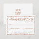 A classy and elegant calligraphy burnt orange and white retro old money wedding rsvp card. That has a vintage and modern white background with terracotta western orange script and hand written whimsical stylish wording and hand drawn branches. Luxurious and chic with classic handwritten lettering. It is all editable by clicking on the personalize button.