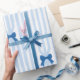Add a touch of sophistication to your gifts with this elegant blue bow and stripe wrapping paper. The soft pastel background paired with neat vertical stripes and charming blue bows gives your presents a refined and timeless look. Perfect for birthdays, baby showers, weddings, and special celebrations, this high-quality gift wrap roll brings style and grace to every package.
