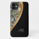 Classy ladies bling smartphone case with monogram initials you can personalize online. Designed with simulated jewel background art digitally printed to mimic the look of sparkling jewels with gold and black colored design element adds a modern touch.