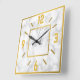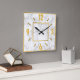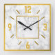 A chic and stylish marble pattern wall clock with roman numerals in gold glitter and gold frame.