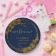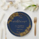 Classy Gold Floral Navy Blue Welcome Paper Plate