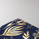 Elegant and simple gold leaves, houseplant foliage hand-drawn navy-blue illustration, filled with a beautiful fall greenery pattern, faux gold foil leaves vegetation, on a dark blue colour, navy-blue background. Botanical floral nature hand painting, contemporary plant design.