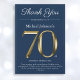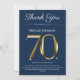 Classy Gold Navy Blue 70th Birthday Thank You Card