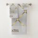 Stylish gold, grey and white girly bath towel great as a gift for your loved ones. Show them how much you love them with this personalized bath towel set. Edit name.