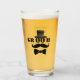 Groom glass with top hat and moustache motif and stencil lettering. Great for stag nights and wedding receptions. Personalised with name and date on back.