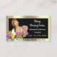 Cleaning service business card is decorated with gold colored cleaning supplies. Best for commercial or residential services for cleaning, housekeeper, maid service, home services, as well as janitorial supplies.