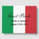 Classy Italian flag guest book for wedding party. Green white and red flag of Italy design with elegant script text. Perfect for letting guests write some words. Personalize with name of bride and groom. Also useful for other occasions.