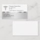Classy medical business cards with smart design that includes a silver coloured medical symbol that has a metallic look and silver coloured background design element. Customize the text to make it your own and hand out your business cards in professional style. Designed for a doctor office, medical or health insurance agent.