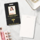 Classy Medical Gold Caduceus on Black Photo ID Badge