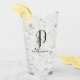 Stock your bar with beautiful personalized glassware. This design features a lovely ornamental scroll monogram P along with your last name.