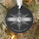 Fancy Holiday Keepsake Christmas Photo Ornament -- Elegant silver filigree snowflake on black background with ribbon. Add your own favourite family, child, or pet picture on the back to create unique personalized keepsakes -- perfect for baby's first, engaged or newlywed couples, graduation, milestone celebrations, and pet memorials. Chic and fashionable trendy memento to hang on your tree and enjoy the memories for years to come, or send as gift to friends or loved ones far away.
