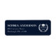 **Keywords:** Navy Blue Address Label, Customizable Return Address Label, Laurel Wreath Emblem Label, Elegant Mailing Label, Graduation Stationery, Professional Address Label, Polished Mail Decor