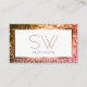 Classy Orange Pink Ombre Glitter White Monogram Business Card