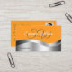 Classy Orange Wavy Silver Decor Initials and Photo Business Card