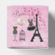 Chic, romantic, pink Paris favour box with the Eiffel Tower, French magazines, beautiful pink and black corset, dressmaker's mannequin, antique bird cage and hearts on a shabby chic pink vintage look background. An elegant, fun, trendy, glamourous gift for women and girls. Some elements purchased from Suz Brill at commercial-use-scraps.com. If you need any assistance customizing your product please contact me through my store and I will be happy to help.