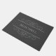 Classy grey and silver scroll custom front door mat featuring your name. Available in two sizes. Background colour can be changed. Shown is the fully customizable name, Mitchell. From Heard_.