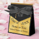 Classy Personalized Graduation Favour Boxes for your Gold and Black graduation party. Type in the Graduation Year and his or her Name or YOUR TEXT or Delete. Black and Gold Graduation Favour Boxes will add a classy feel to your party.