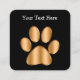 Let this classy pet theme business card template presented on our square business card stock represent you with clients in an upscale way. Designed with a gold paw print symbol and your name or company name featured on the front. and ability to make the detail information on the other side work for your pet service or business.